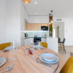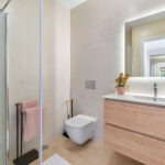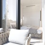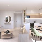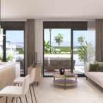 The outdoor spaces of these homes are designed to maximize enjoyment of the Mediterranean climate. Each property features a private terrace, ideal for outdoor relaxation or al fresco dining. Additionally, high-bungalow homes have a solarium, providing extra space for sunbathing or enjoying the views. The communal garden areas complement the setting, offering a green space where residents can walk or relax. The proximity to the sea, just 4 km away, allows for enjoying the sea breeze and pleasant coastal walks.