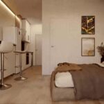 The interior design of these properties focuses on comfort and functionality. All homes feature one bedroom and one bathroom, ideal for couples or individuals seeking a cozy space. Built-in wardrobes offer efficient storage solutions, keeping spaces tidy and clutter-free. The video intercom is a standard feature, providing security and peace of mind for residents. The layout of the spaces is designed to offer a cozy and practical environment, adapting to the needs of its inhabitants.