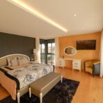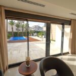 The villa's interior is carefully designed with high-quality materials, such as porcelain tile flooring, which adds elegance and durability. The layout includes three bedrooms, all with built-in wardrobes that optimize space and storage. The three bathrooms are equipped to offer comfort and functionality. The villa also features a garage, providing a secure space for the vehicle. The integration of air conditioning ensures that each room is comfortable, regardless of the outside temperature.