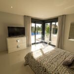 The villa's exterior is designed to maximize enjoyment of the Mediterranean climate. The property includes a private garden, perfect for relaxing or enjoying outdoor activities. The terrace offers additional space for entertainment or simply to enjoy the views. Additionally, the villa features a solarium, ideal for sunbathing in privacy. The presence of a pergola provides shade and a cozy place to rest. The jewel of the exterior is the private pool, offering a refreshing oasis during warm summer days.