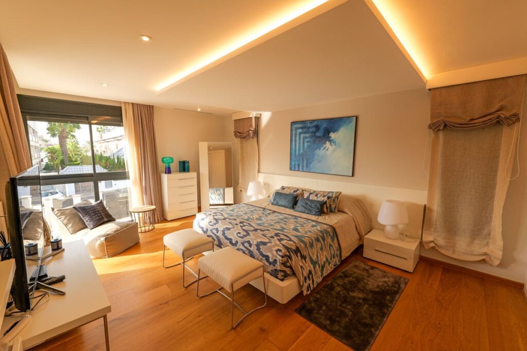 The villa's exterior is designed to maximize enjoyment of the Mediterranean climate. The property includes a private garden, perfect for relaxing or enjoying outdoor activities. The terrace offers additional space for entertainment or simply to enjoy the views. Additionally, the villa features a solarium, ideal for sunbathing in privacy. The presence of a pergola provides shade and a cozy place to rest. The jewel of the exterior is the private pool, offering a refreshing oasis during warm summer days.