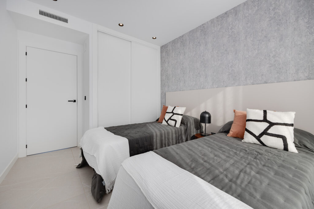 The exterior design of these detached homes in Torrevieja is simply spectacular. Each property features a private garden, perfect for enjoying outdoor moments in a tranquil setting. The presence of a private pool adds a touch of luxury, allowing you to cool off on hot summer days. Additionally, the terraces offer extra space to relax or entertain guests, while the solarium provides an ideal spot to sunbathe and enjoy panoramic views of the area.
